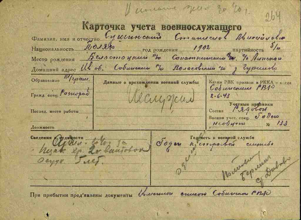 04.02.1943r. – opuścił szpital, skierowany do rezerwy oficerskiej Frontu Zachodniego.