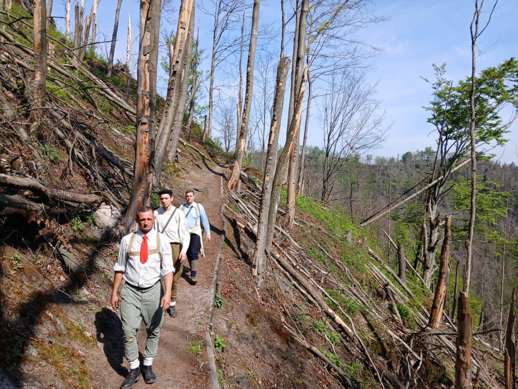 Choć cała trasa nie była trudna, to jednak wysoka temperatura i strome podejścia dość solidnie dały się we znaki większości uczestników. Nie obyło się też bez drobnych otarć stóp – historyczne obuwie to nie to samo co dzisiejsze buty trekingowe, a przy temperaturze przekraczającej 26 stopni wełniane wywijki mające chronić kostkę od otarć okazały się przeciwskuteczne. Problemem okazał się też niedostateczny zapas wody zabrany przez część uczestników. Mimo tych drobnych niedogodności część turystyczną wypadu uznać można za udaną.