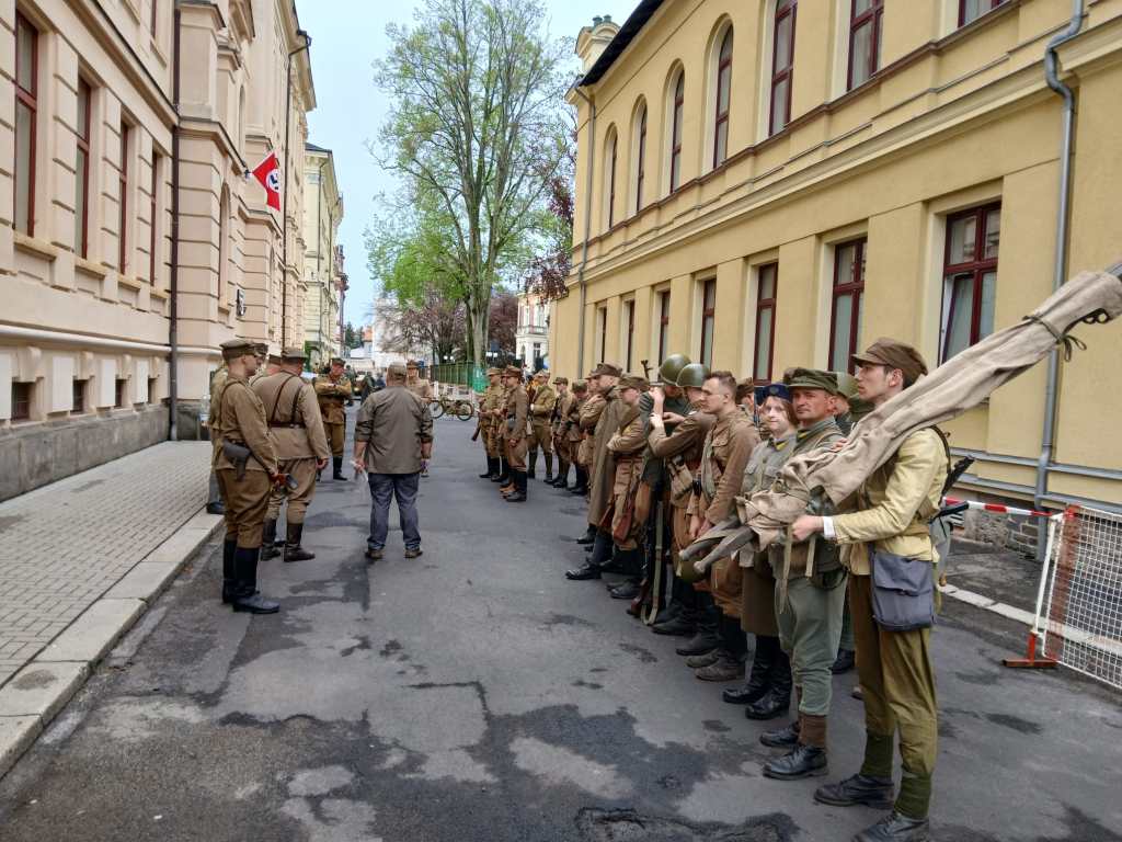 Wieczorem zajechaliśmy do szkoły w Rumburku, która stanowiła bazę noclegową dla uczestników sobotnich inscenizacji. Na powitanie każdy z uczestników dostał także książkę o działaniach 2AWP na terytorium Czechosłowacji, napisaną przez głównego pomysłodawcę wydarzenia a współfinansowaną przez władze miasta Rumburk. Miło też było zobaczyć trochę znajomych twarzy wśród braci rekonstruktorskiej.